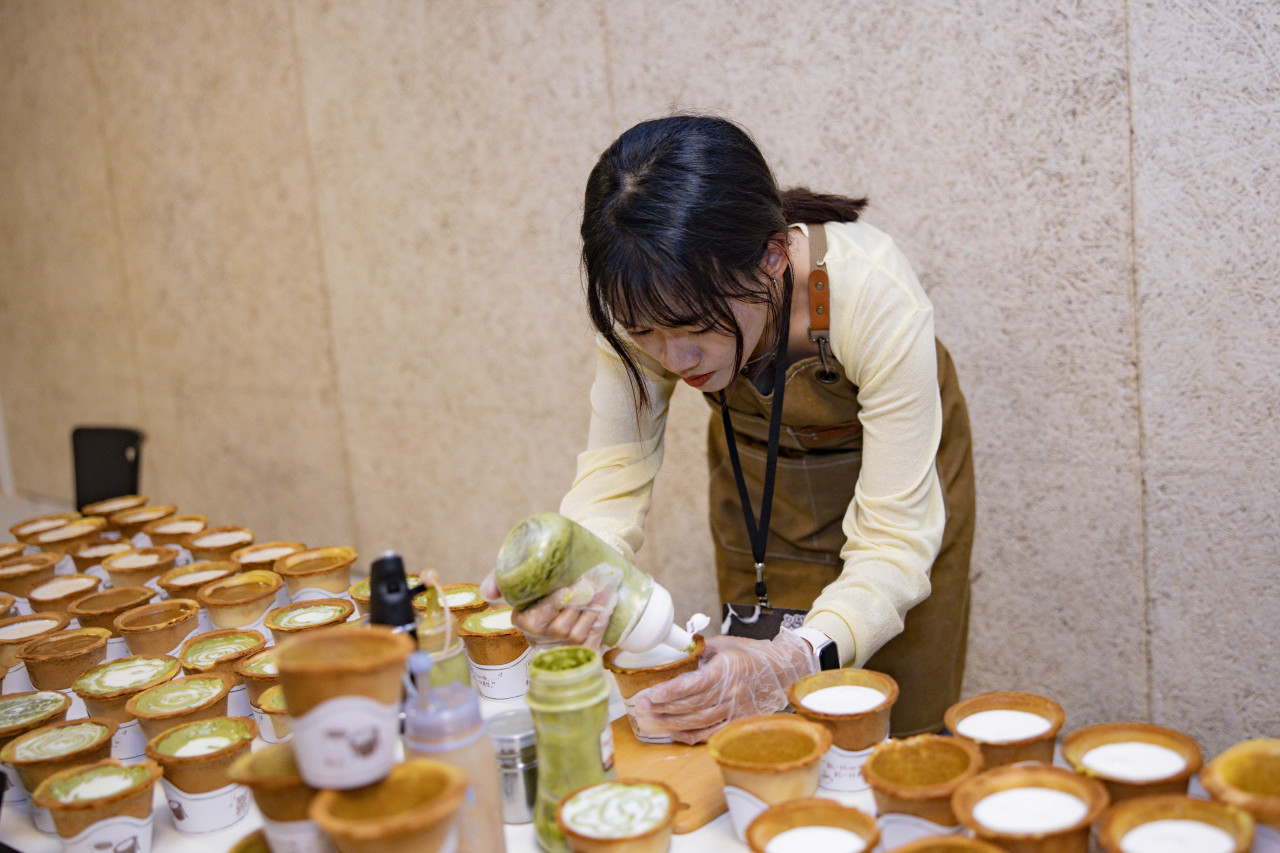 餅乾杯的設計也充滿巧思。「我們希望餅乾杯不僅是一個環保產品,也是一種藝術。」杯子邊緣保留手工質感,讓消費者在享用時能感受到用心與溫度。此外,餅乾杯內壁採用天然蜂蠟作為防水塗層,不僅耐高溫,還能確保飲料不會滲透到餅乾中,讓杯子可以長時間使用。