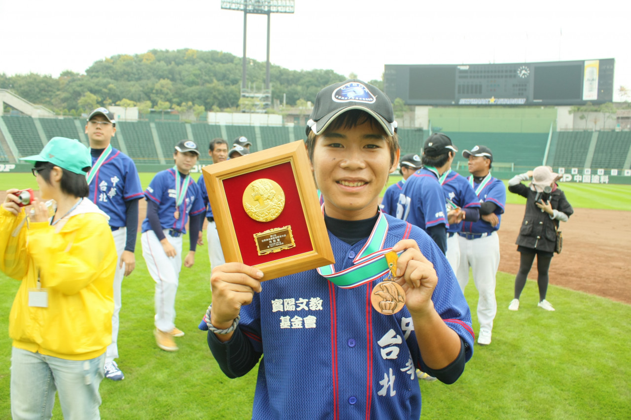 ▲ 潘瑋杰(中)參加世界身障棒球賽,榮獲第二屆打擊獎。(照片提供:潘瑋杰)