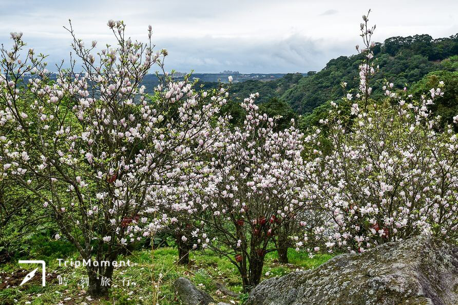 新北市的淡水天元宮為賞櫻勝地,每年一到花潮必定湧入大量的賞櫻人潮。但是您知道距離天元宮一小段距離的楓樹湖古道旁,有一片私人土地景點,種植的可是全臺少見的木蓮花。