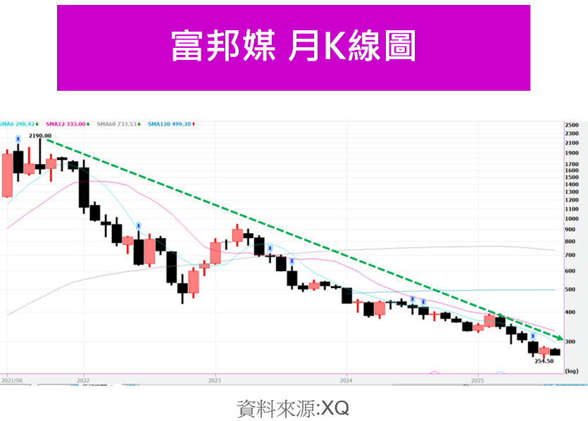 從購物台和購物型錄出發,股價在高成長率帶動下,2021年攻到2190元的天價, 然而面臨蝦皮、酷澎、淘寶等業者的擴張,即使仍為電商龍頭,股價仍修正到254.5元,最高跌幅達88.38%,如附圖二。