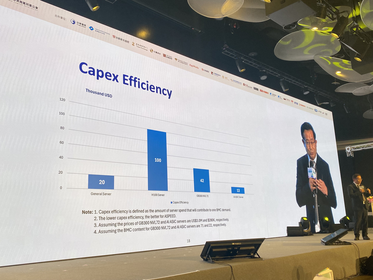 另外,林鴻明也比較各種伺服器市場的資本支出效率(Capex efficiency),也就是對比通用伺服器、H100、GB300到ASIC(特殊應用積體電路)等產業,其中ASIC市場對信驊來說商機最大,因為每1.3萬美元的ASIC投資,就需要用到一顆信驊的BMC晶片,這是對信驊最大的商機,至於H100每十萬美元的資本支出才用到一顆BMC。因此,隨著ASIC市場的崛起,未來信驊的成長性還是相當看好。(見下圖四,林宏文攝影)