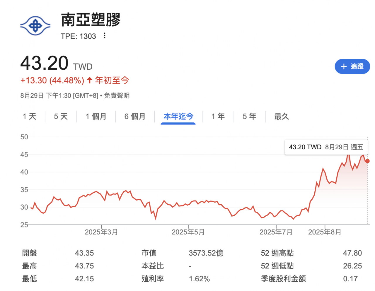 法人最新報告指出,在電子材料全面漲價、高階CCL(銅箔基板)供不應求延續至2026年,以及子公司南電(8046)、南亞科(2408)營運受惠下,南亞營運持續回升的趨勢明確,維持「買進」評等,並將目標價上修至52元。