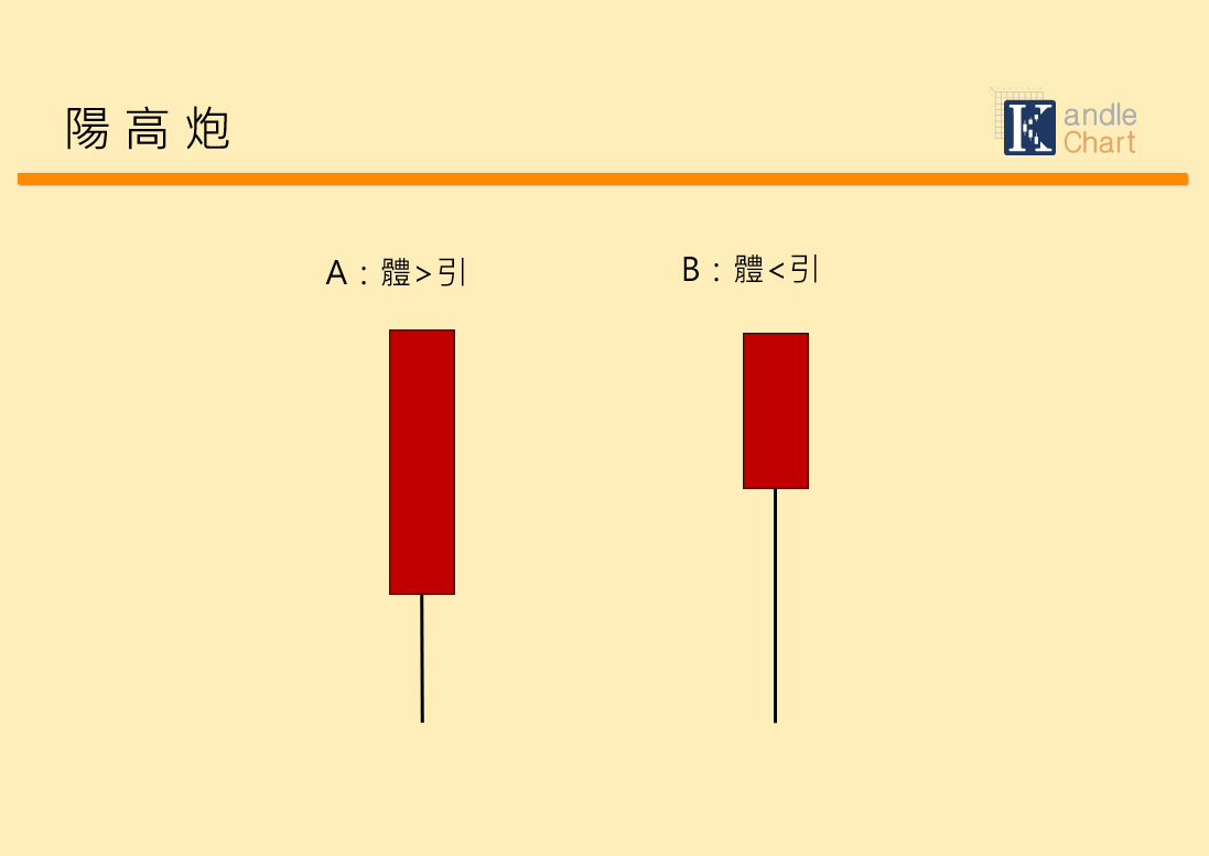 因而,如果出現A實體大、下引短的陽高炮,就是盡快觀察介入,以搭上走勢北上的順風車;如果出現B實體小、下引長的陽高炮,則需觀察數日,確認下引低價跌不破引進買氣後再行介入也還不遲。