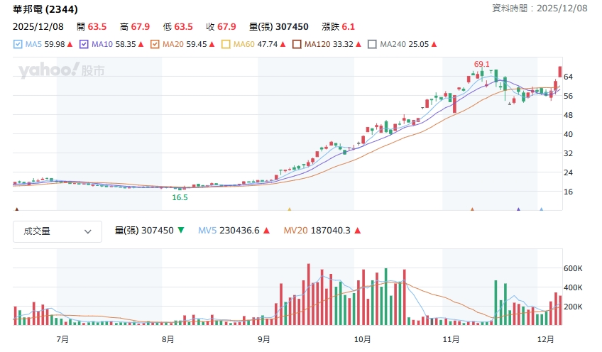 華邦電(2344)股價周一再度漲停,來到67.9元,逾6萬張等買,記憶體行情已經熱到所有投資人都高度關注,彷彿全民運動。