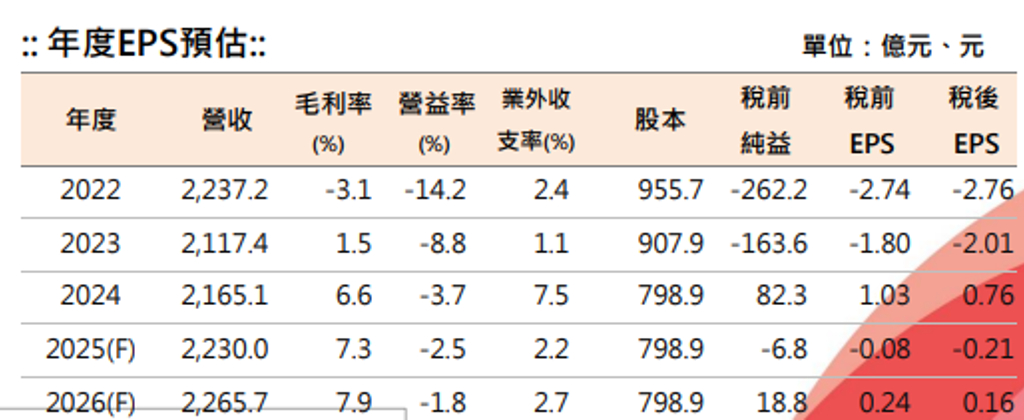 在群創端出第2個「六年大計」,全力轉型突圍下,預估2026年有望轉盈,EPS 0.16元,除給予「買進」評級,目標價喊上25元,以目前股價20元計算,上檔還有25%空間。