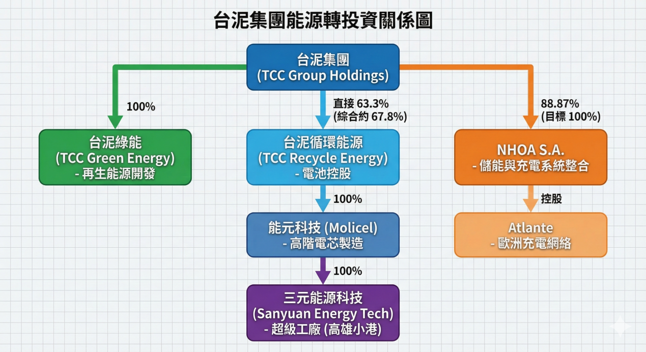 | 儲能系統 | 台泥儲能 (NHOA.TCC) | 100% | 負責台灣與亞太區儲能、充電樁 |