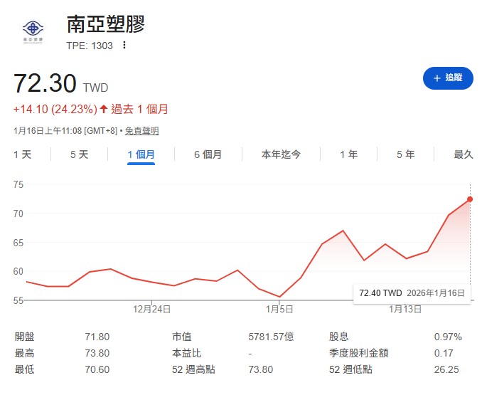 南亞(1303)股價為何漲?兩大利多支撐股價重返 1 樓