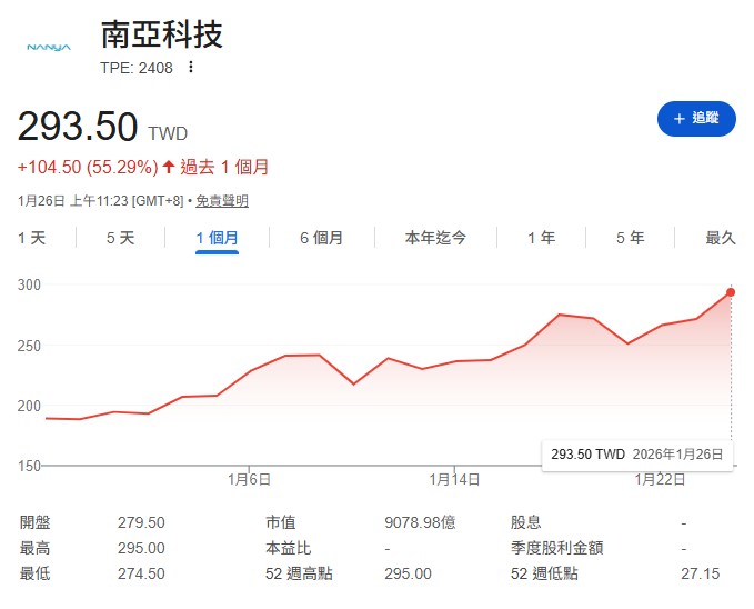 至於群聯(8299),雖然是產業績優生,但股價已突破2000元,對於一般投資人門檻較高;反觀南亞科、華邦電等,爆發力與股價親民度更具吸引力。
