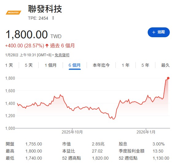 所以,這波漲勢不單是資金輪動,也可以視為市場對聯發科的「價值重估」,發現它不再只是消費性電子的週期股,而是擁有AI核心技術的成長股。
