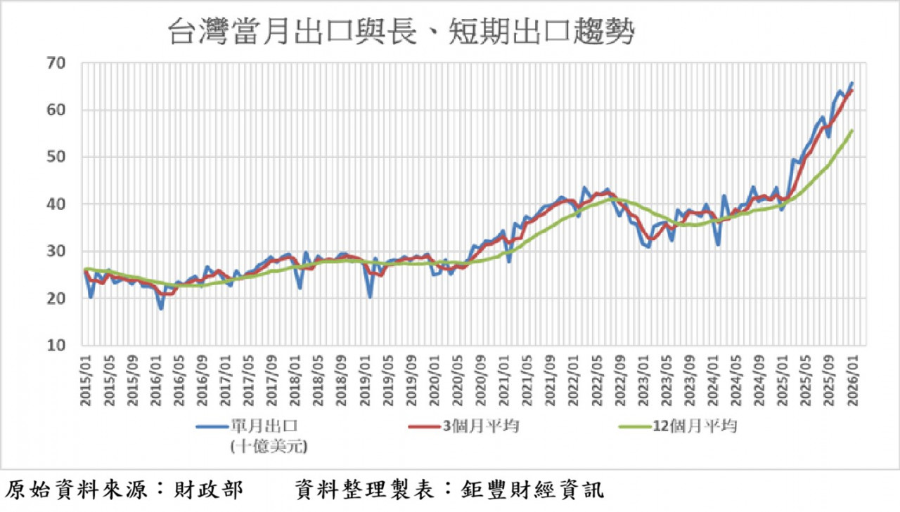 然而,大型雲端服務供應商持續擴大資本支出、各國加速推動主權AI與算力基礎建設,加上台灣在半導體與資通訊供應鏈中的關鍵地位,仍將支撐出口維持相對高檔水準。整體而言,1月進出口數據不應僅視為短期高峰,而更像是台灣成功嵌入全球AI長期成長曲線的重要註腳。
