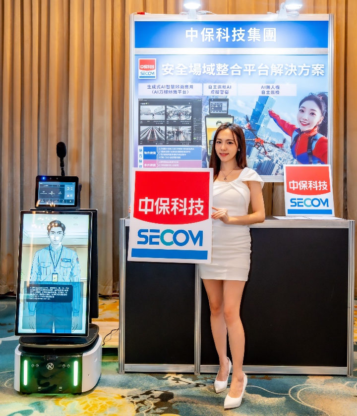 在本次展區中,最受市場矚目的是「中保無限飛」無人機自主巡檢與首款「AI 自主巡檢虛擬警衛」。中保科將巡檢邏輯從地面拉升至立體空間,透過高穩定、機動性強的四軸無人機,實現全時段、全自動巡航。該系統不僅能執行建築牆面裂痕檢測與火煙偵測,更能辨識陌生入侵者。這項「立體巡防網」技術正逐步導入智慧工地與大型場域,透過 AI 影像分析平台即時告警,協助企業在落實職安管理的同時,大幅降低人力巡檢成本,達成 ESG 數位轉型目標。