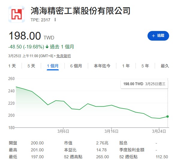 沒想到,百萬股民殷殷期盼的慶祝行情不但落空,股價反而苦吞黑棒,甚至跌破200元關卡,3/24收盤195元。