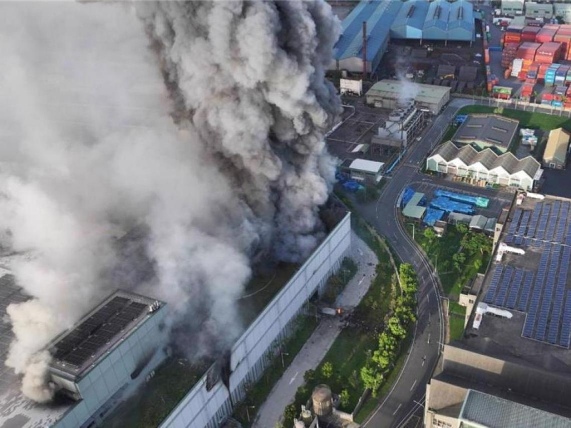 ▲三元能源小港電芯場大火,造成母公司台泥110億損失。高雄市消防局提供