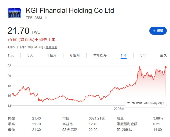 凱基金(2883)從不配息到配1元,股價重回21.7元,發生了什麼事?