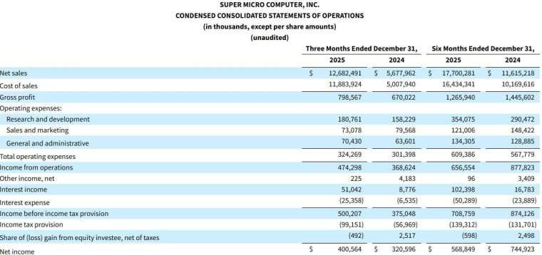 不過,亮眼營收背後仍伴隨明顯壓力,美超微毛利率降至 6.3%,低於前一季的 9.3%,也低於管理層在前一次財報電話會議中給出的 6.5% 指引。