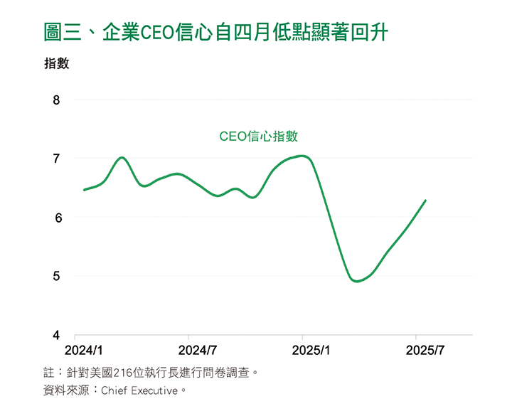 如今貿易談判的結果確定了美國促使製造業回流的決心,趨勢明確;大而美法案更是直接對於在美國增加產能的政策利多,直接強化了企業信心(見圖三)。如果說第二季度企業還沒辦法下定決心將產能轉回美國,那麼第三季度很可能就是企業決策的轉折點,我們很可能會在下半年看到越來越多重要跨國企業宣布轉移生產基地。