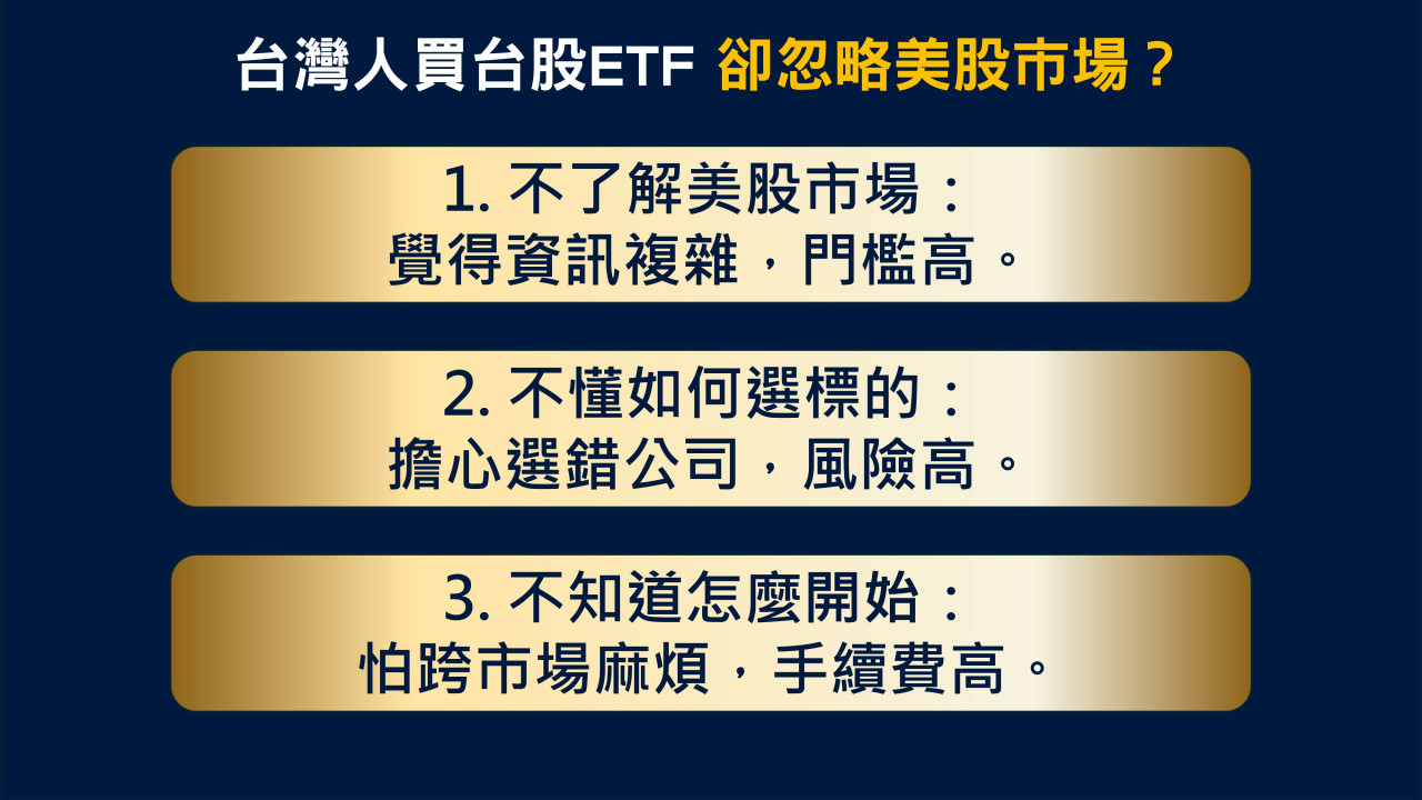 對於不想花費大量時間盯盤、選股的投資人,Jenny 建議「買一籃子好公司」是更省時的作法。過去台灣投資人因不了解市場、擔心選錯標的或怕手續費高而卻步,但現在透過台股掛牌的美股ETF,用新台幣就能直接參與「美股全明星隊」。