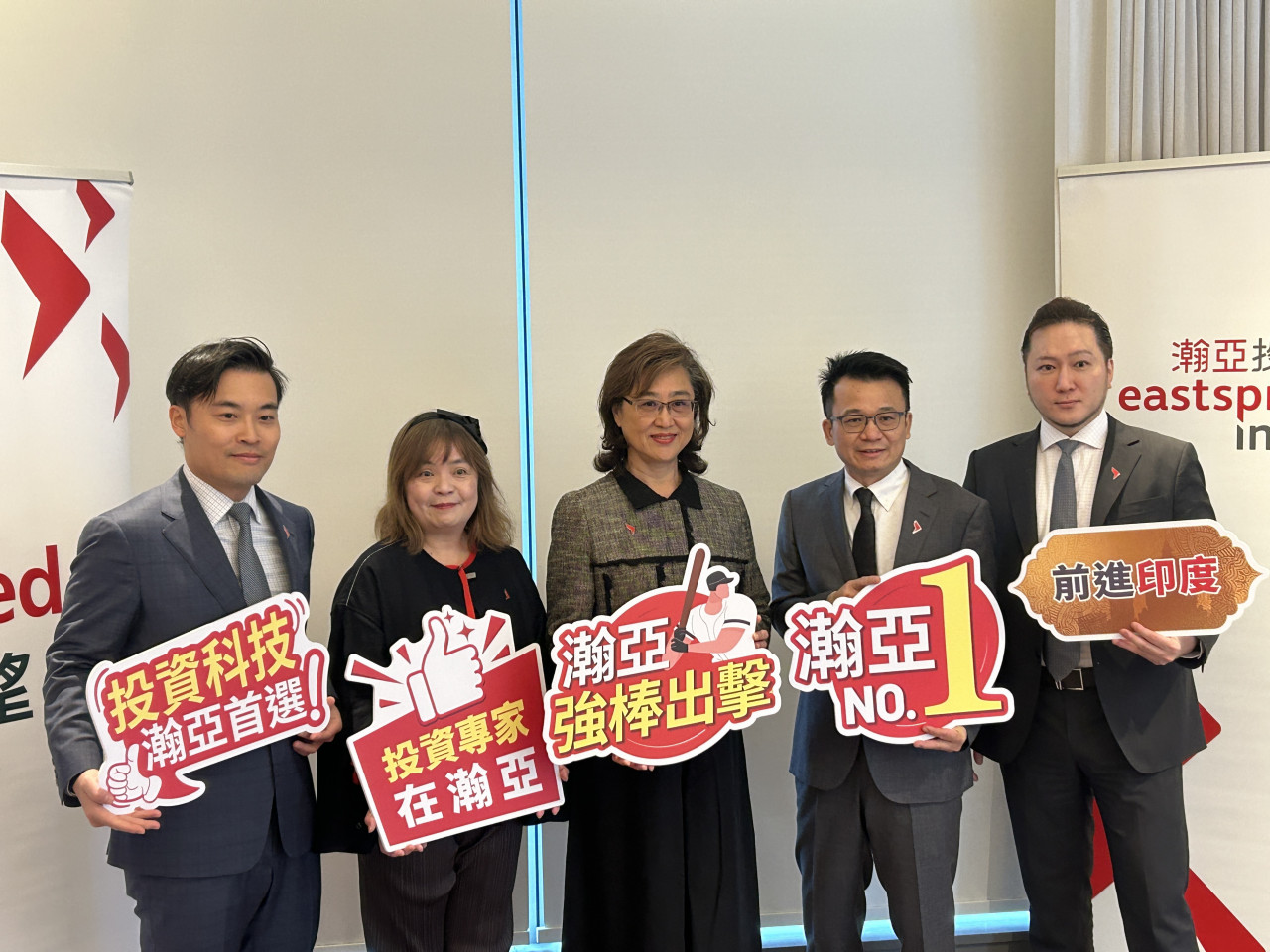 圖左至右分別為:瀚亞投信產品投資策略部協理鄭永欣、瀚亞投信投資長林如惠、瀚亞投資大中華區總裁暨瀚亞投信董事長王伯莉、瀚亞投信國內投資部主管姚宗宏、瀚亞投信產品投資策略部協理劉仲翔。(攝影:林韋伶)