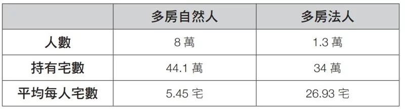 從下面的表格就能看出,法人大量搶購房地產和囤房現象,又比自然人嚴重許多。