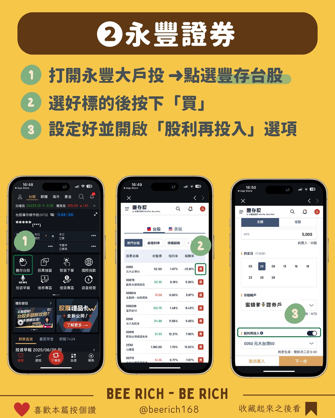 股息再投入該怎麼做?除了股息入帳後自己手動買,還能用券商的「股息再投入」功能,讓股息自動買回持股,省事又不怕忘記。
