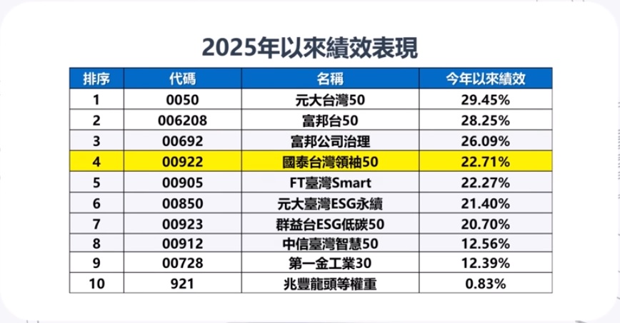 00922與其他熱門市值型ETF相比,績效表現如何?
