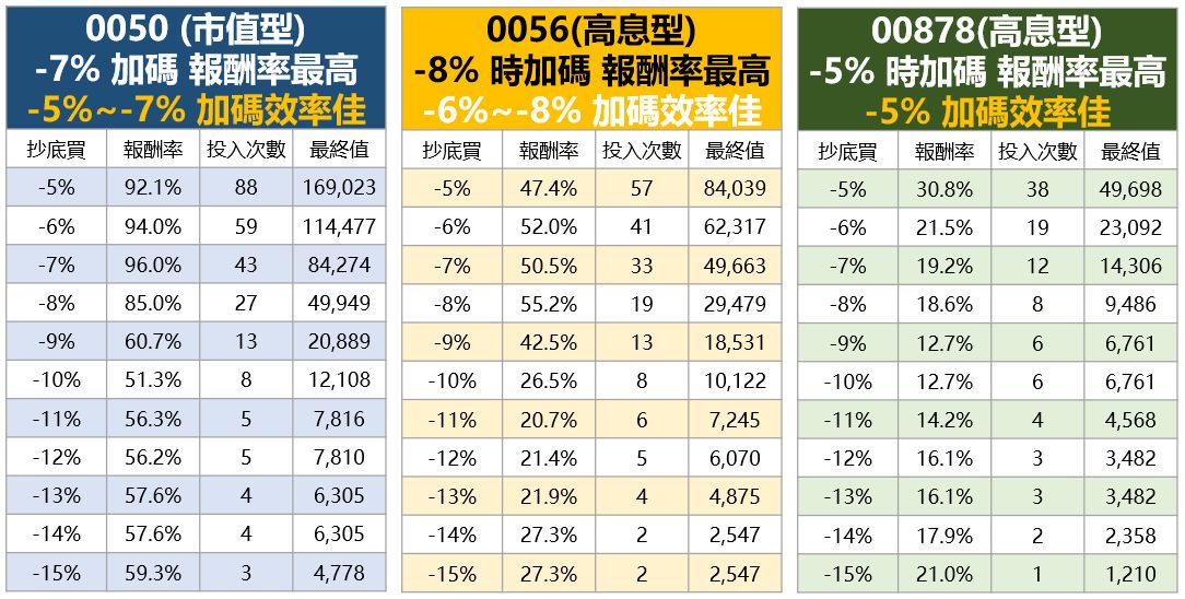 0050、0056、00878跌多少要加碼?三檔ETF的最佳效率點