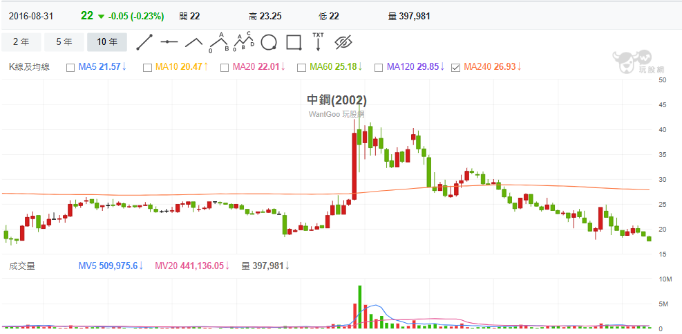 本文獲「玩股網」授權轉載,原文:中鋼(2002)跌至十年新低!鋼市競爭激烈,仍不減股東熱情,股東人數攀高!