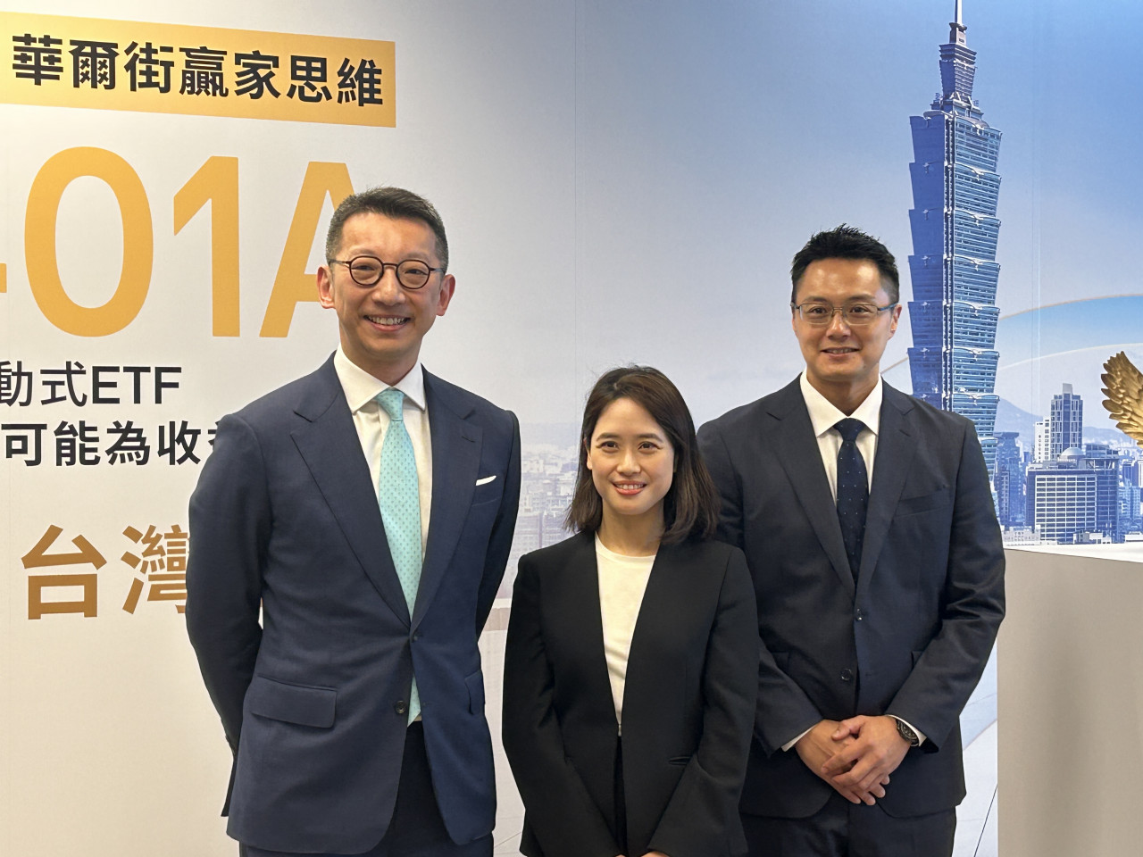 圖左至右為:摩根投信董事長唐德瑜(Henry)、摩根台灣鑫收益主動式ETF(00401A)經理人沈馨、摩根台灣鑫收益主動式ETF(00401A)經理人沈伯宇。(攝影:林韋伶)