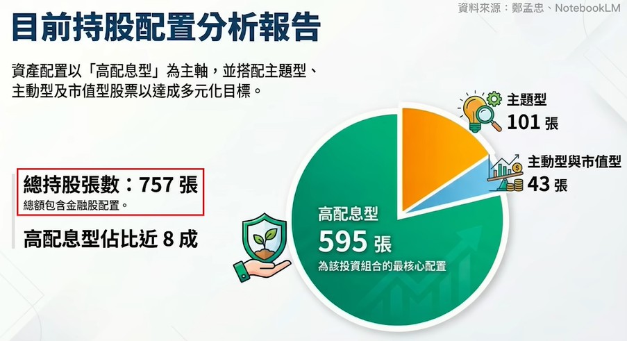 儘管佈局主動型標的,鄭孟忠的投資核心依然高度集中在高配息 ETF,這與他身為退休人士的身分密不可分 。