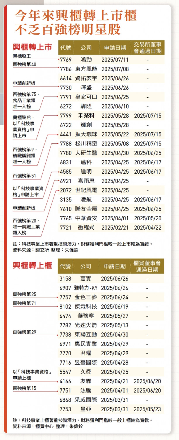 事實上,除了興櫃與公開發行公司,此次也有五家屬於「創新板」的企業入榜。創新板是證交所於二一年推出的新融資平台,目的是為了降低新創公司進入資本市場的門檻。