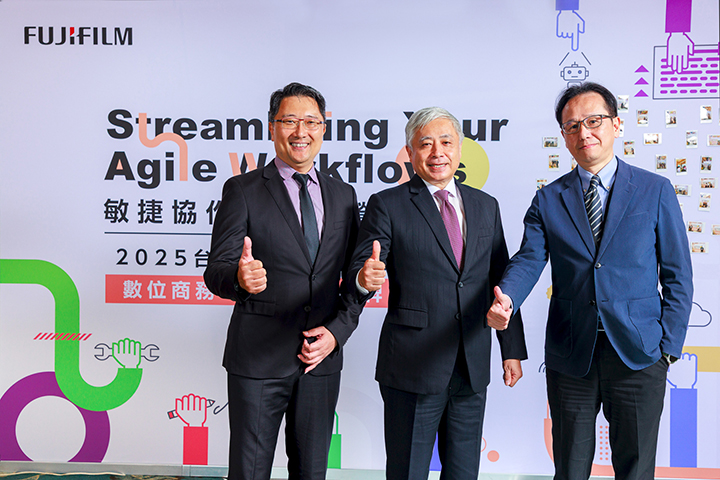 台灣富士軟片資訊希望能透過數位工具,達成人與流程的無縫連結,讓不同崗位的人,都發揮即戰力,提升營運效能。圖由左至右為:台灣富士軟片資訊營業高級本部長王珮祥、台灣富士軟片資訊董事長兼總經理勝田明典、台灣富士軟片資訊技術本部長張志超。