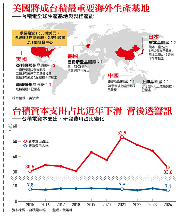 不過,林啟超直言,「台積電在美生產比率提升已成趨勢,很難去改變。」他預期七至八年後,美國廠生產比率將從如今不到一%,提升至約一成;中長期而言,在美營運的各種成本壓力,也都可能成為未來「科技通膨」的最大風險。