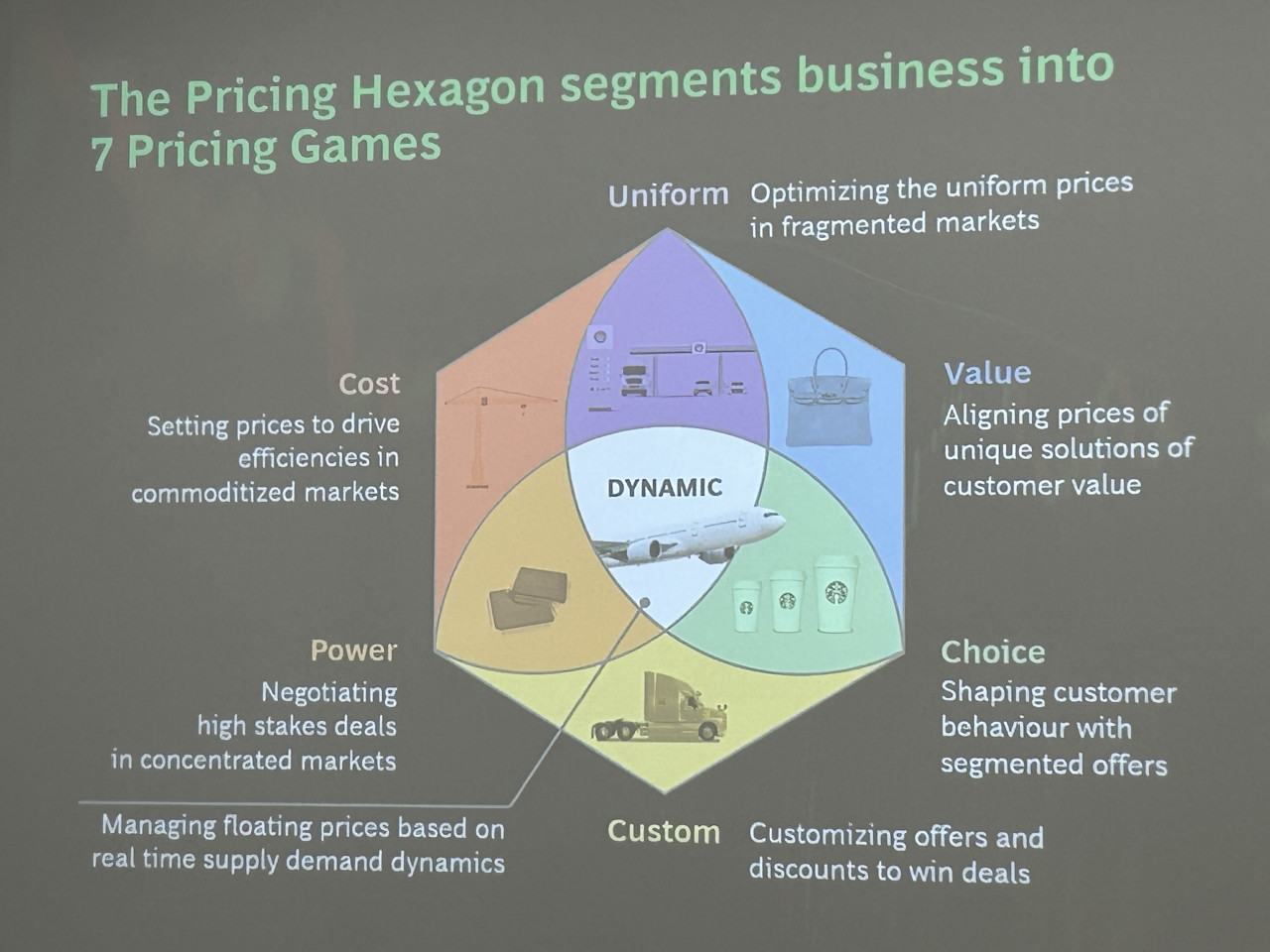 Jean-Manuel Izaret將各種定價模型與背後的驅動因素整合成一套完整的體系,並以「策略性定價六邊形」(Strategic Pricing Hexagon)的工具來呈現這套整合的定價理論。
