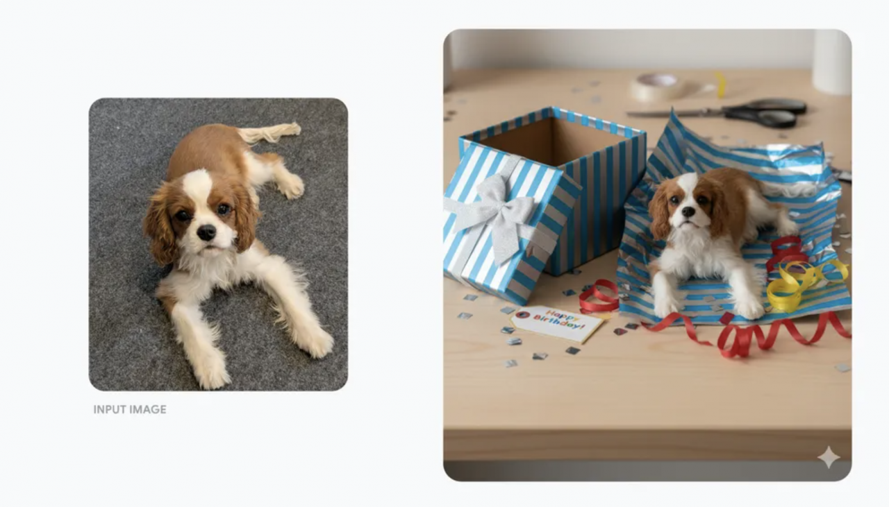 想把你的寵物變成小雕像或電子遊戲角色嗎?還是想和小時候的自己來個下午茶會?Nano Banana讓你在編輯過程中保持人物或寵物的形像一致,把多張照片融合在一起,修改圖像的某些部分而保持其餘部分不變,並將一張照片中對象的樣式應用到另一張照片上,這些都能同時保留原始照片的重要細節。