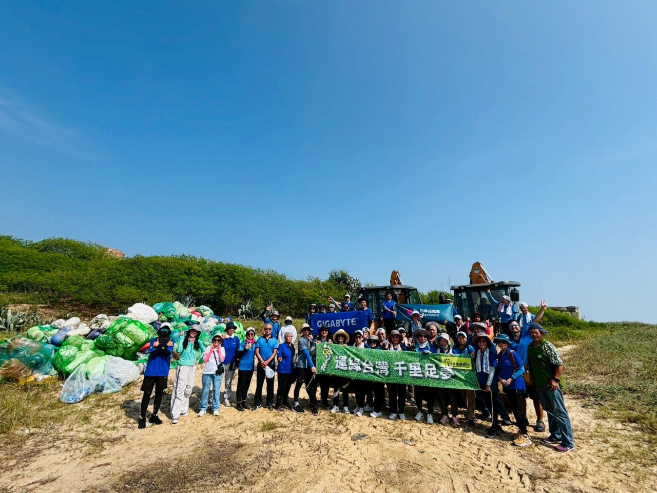 技嘉科技繼2015年【運綠台灣 千里足夢】的8年徒步環島撿拾垃圾,2023年展開【運綠台灣 千里足夢2.0】跳島計畫,陸續至綠島、馬祖淨灘。甫於2025年10月金門后扁沙灘完成第三次跳島,清除垃圾1740公斤,加上2021年至今的【未曾忘技 海育吾嘉】專案、及供應鏈聯合淨灘等活動,已累計32場淨灘、總計清除近3萬公斤的垃圾,為台灣換上潔淨的妝容。