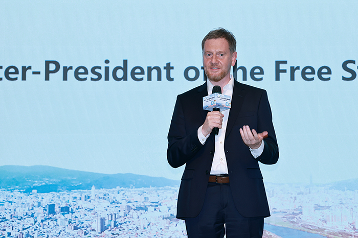 德國薩克森邦邦總理Michael Kretschmer在專題演說中,為與會者帶來永續概念的歷史溯源。他指出,永續(Sustainability)觀念在薩克森邦由來已久,如三百多年前,薩克森礦業先驅就在礦山中領悟到,不能為了發展礦業,而砍光所有樹木,「我們應該只取用,自然中還能再生的部分」, Kretschmer直言:「這個原則在300年前是對的,現在仍然正確」。