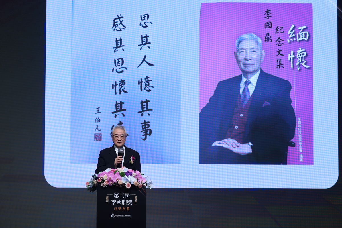 李國鼎基金會董事長王伯元在致詞時表示,李國鼎獎的設立與頒獎「是在傳揚李資政的時代精神,帶動台灣產業界更高層次的大戰略,持續推升經濟榮景,再造成長契機。李資政以其真知灼見協助台灣從困頓中崛起,並以高瞻遠矚為台灣這個小島締造立足全球的堅實基礎。思其人、憶其事、感其恩、懷其德。」