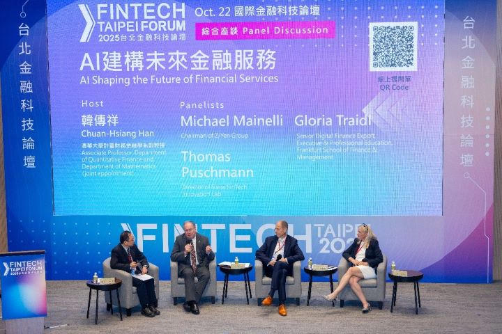 FinTech Taipei國際金融科技論壇上,三位來自全球金融、科技和教育領域的頂尖專家:Z/Yen集團主席Michael Mainelli、瑞士金融科技創新實驗室主任Thomas Puschmann,以及法蘭克福金融管理學院資深數位金融專家Gloria Traidl,共同勾勒出AI時代下,全球金融服務的全新藍圖,以及台灣在這個網路化競賽中的機會與挑戰。