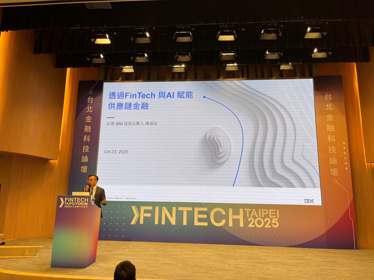 台灣IBM諮詢合夥人陳昌裕以產業供應鏈為核心分享全球供應鏈面臨的挑戰、如何透過Fintech協助優化企業供應鏈、如何透過AI賦能供應鏈金融以及永續發展對供應鏈的重要性。「好的AI模型可以預測七天後的金流。」他表示,因美中貿易戰與關稅的影響,全球供應鏈面臨到資金流動性與供應鏈重組的新挑戰,但也看到新機會,如企業可以透過AI與數據分析提升供應鏈的自動化以及提供更便捷的付款機制給供應商與運輸業者等,創造出企業與銀行無縫協作的新典範。