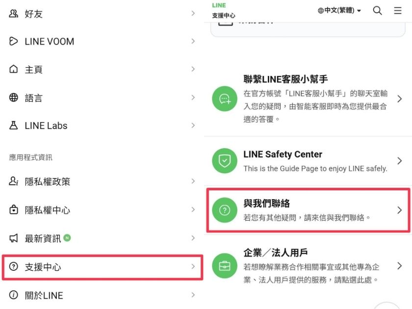 ▲若有使用上的疑問,可開啟LINE應用程式,點選設定→支援中心→與我們聯絡。(圖/擷取自 LINE應用程式)