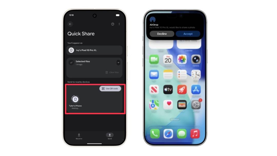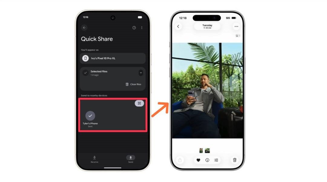▲安卓用戶選擇傳輸對象後,蘋果用戶選擇接受。(圖/翻攝自Google Blog)