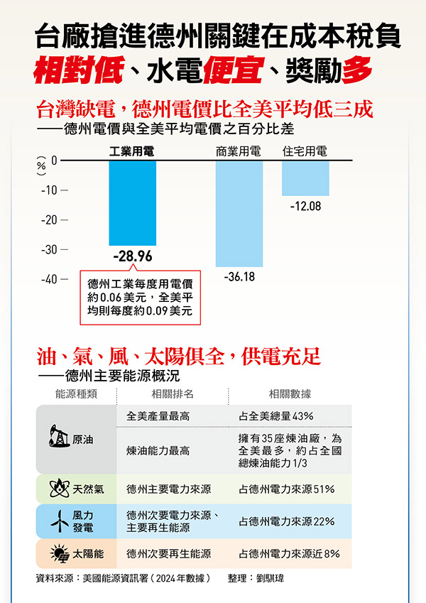 逐勞力而居,是過去20年台灣製造業的寫照。西進中國、南向越南、跨入印度、轉進墨西哥…。這一回「新美國製造」威力發酵,台廠第一次得在高勞動成本區域建構產線。該往哪裡去?地大、電足、稅低的德州,成為熱門選項。該落腳哪座城?達拉斯、奧斯汀、休士頓,黃金三角就是AI新台鏈最新科技聚落。