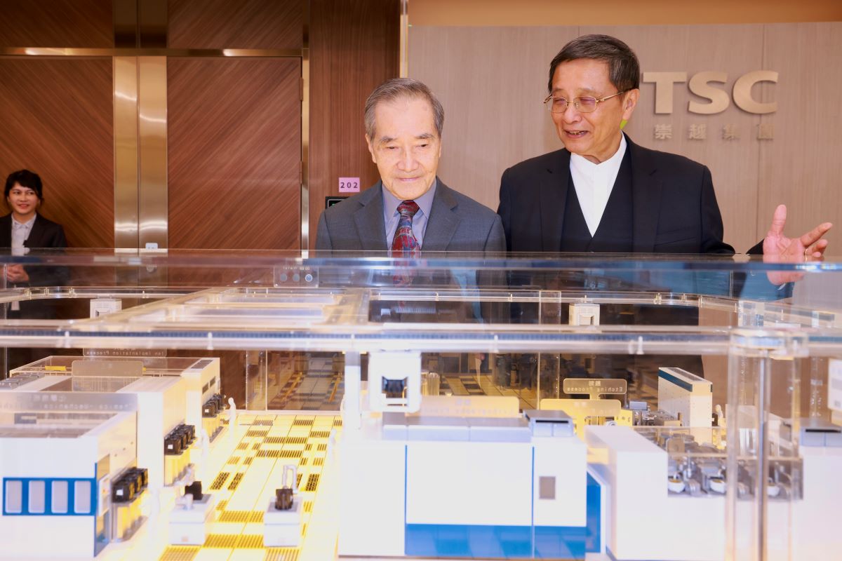 國內最大半導體設備及材料的代理商崇越集團周二(12/16)將三座半導體廠模型贈與清華大學半導體研究學院,林本堅特別出席捐贈典禮。