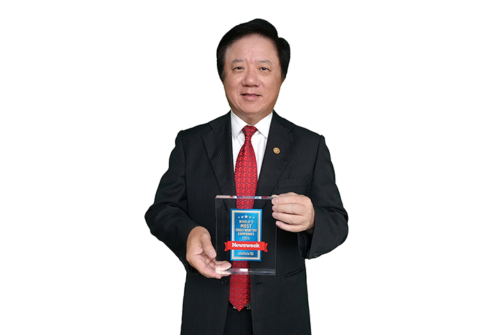 中華電信蟬聯《Newsweek》「全球最值得信賴企業」榜,中華電信董事長 簡志誠表示「誠信為本、客戶信賴、創新創價及承諾當責」是驅動企業前進的核心價值觀。