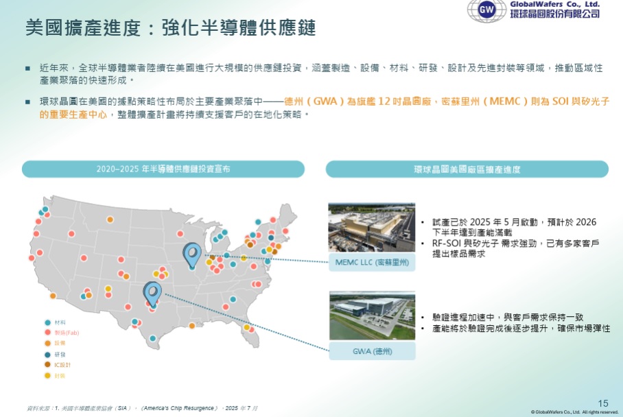 「所以方向上來講,包括政府跟各國的Tier 1這些客戶,他們都很希望是,就算我(環球晶產能)不是給你100%,但也希望他供應商裡面,有一部分能夠 local supply,所以我覺得方向上是很好的。」