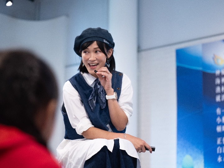 金鐘獎得主簡劭瑜姊姊在館內透過戲劇性方式,展現崇越的繪本故事,引導小朋友認識台灣並了解環保的重要性,讓教育與互動結合。