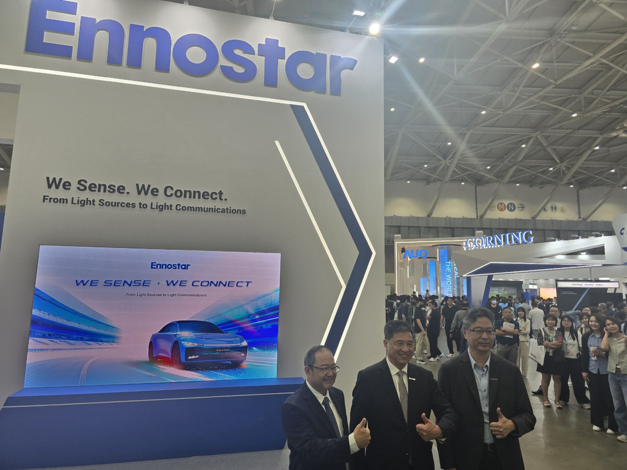 富采目前已經加入台灣光通訊戰隊:除了與轉投資的鼎元合作PD感測器、透過母公司友達負責光纖對位與RDL先進封裝外,更投資了由Lumentum團隊成立的光通訊設計公司亮訊,以及光通訊半導體廠環宇-KY,富采特助翁崇銘透露:「透過友達的協助,富采順利拿到了Micro LED光通訊產品所需要的康寧光纖。」