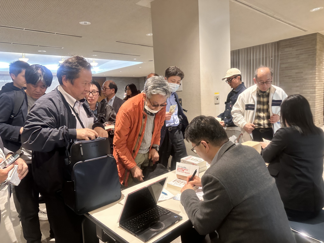 映後座談分享完,我到出版社準備的攤位上簽書。這次出版社準備了更多的書,因為前幾天在名古屋的書全部賣完,還有在場的朋友抱怨說買不到。