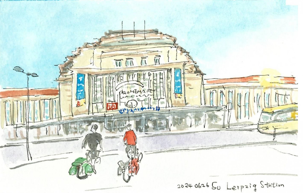 最後,蘇俊賓分享了一幅繪製自萊比錫車站的圖像,並與桃園拆除後的中壢車站對照。他形容桃園未來的建設應更具世界視野,藉由智慧科技、精準規劃與國際連結,打造符合市民期待與永續理念的嶄新面貌。他呼籲各界攜手合作,政府提出命題,產業與專家一同解題,讓桃園在數位化與淨零轉型的時代下,找到最佳答案。