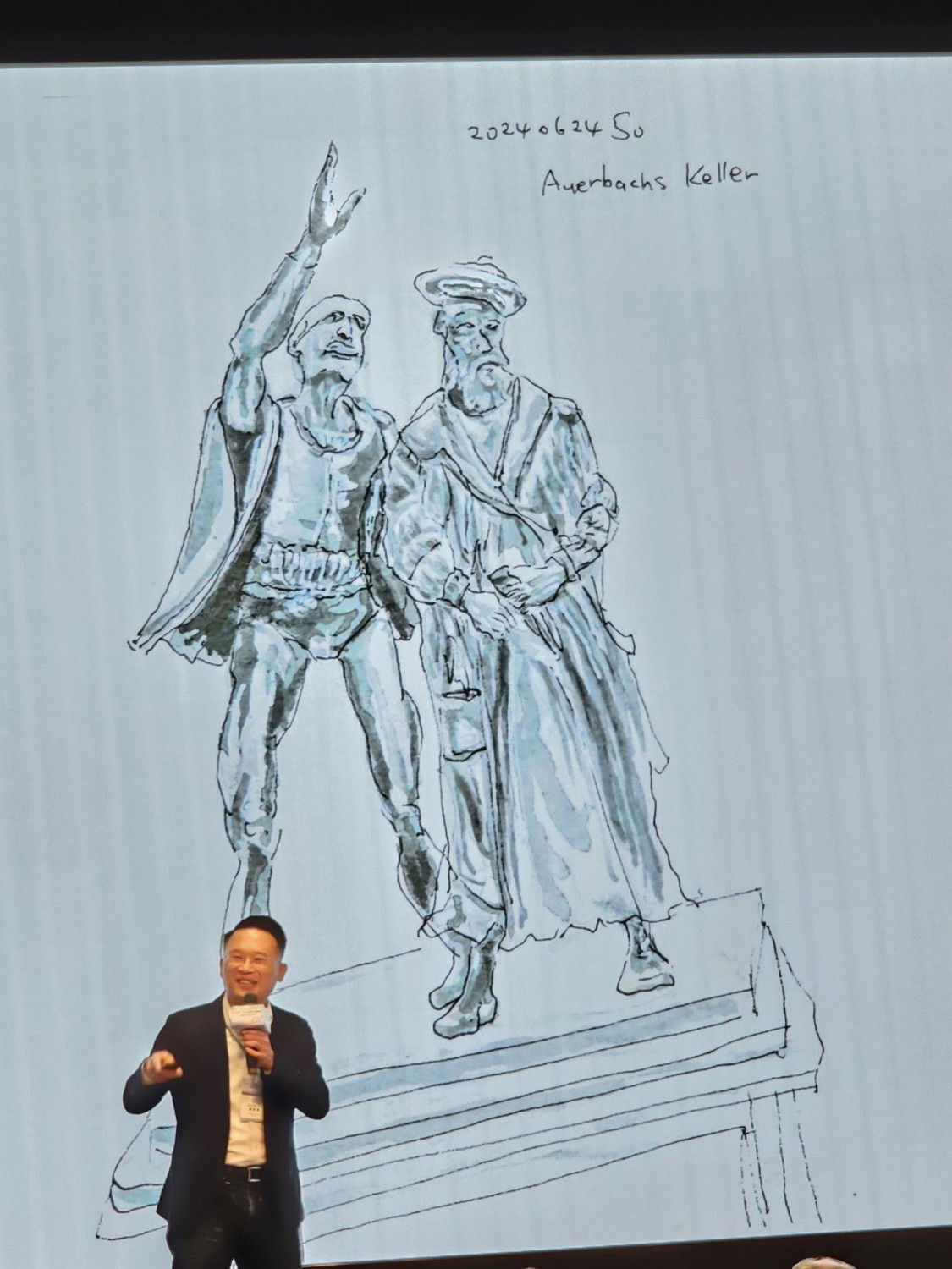「德國薩克森邦是個有趣的地方,最大城市萊比錫孕育了巴哈、孟德爾頌、微積分之父萊布尼茨還有我放到這次簡報的歌德,德國薩克森邦長 Michael Kretschmer會後跟我說,這是他印象最深刻的一次簡報」。